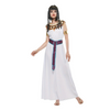 Halloween Cleopatra costume dress for women with royal-inspired details and a flowing sleeveless design. This historical outfit features a white V-neck maxi dress with a structured belt, embroidered collar, and shimmering accessories that channel ancient Egyptian elegance. Crafted from 100% woven polyester with slight stretch, it offers a flattering fit while staying lightweight and comfortable during long events.