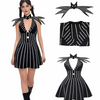 Gothic stripes and a bold neckline create a unique look perfect for Halloween events, cosplay parties, or themed nights. Inspired by a spooky animated classic, this outfit is made from high-quality polyester and includes a collar-style accessory for added effect. The dress offers a flattering mini cut and sleeveless halter fit, making it comfortable and stylish for extended wear.